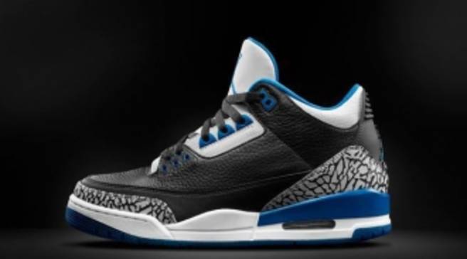 The new Sport Blue colorway evokes the original with a black leather upper and grey elephant print detailing. In 2014 Jordan Brand dropped the Air Jordan 3 Sport Blue a riff on the Air Jordan 3 Black Cement. The sneaker resembles the Jordan 3 Black Cement but a main difference is the addition of blue.